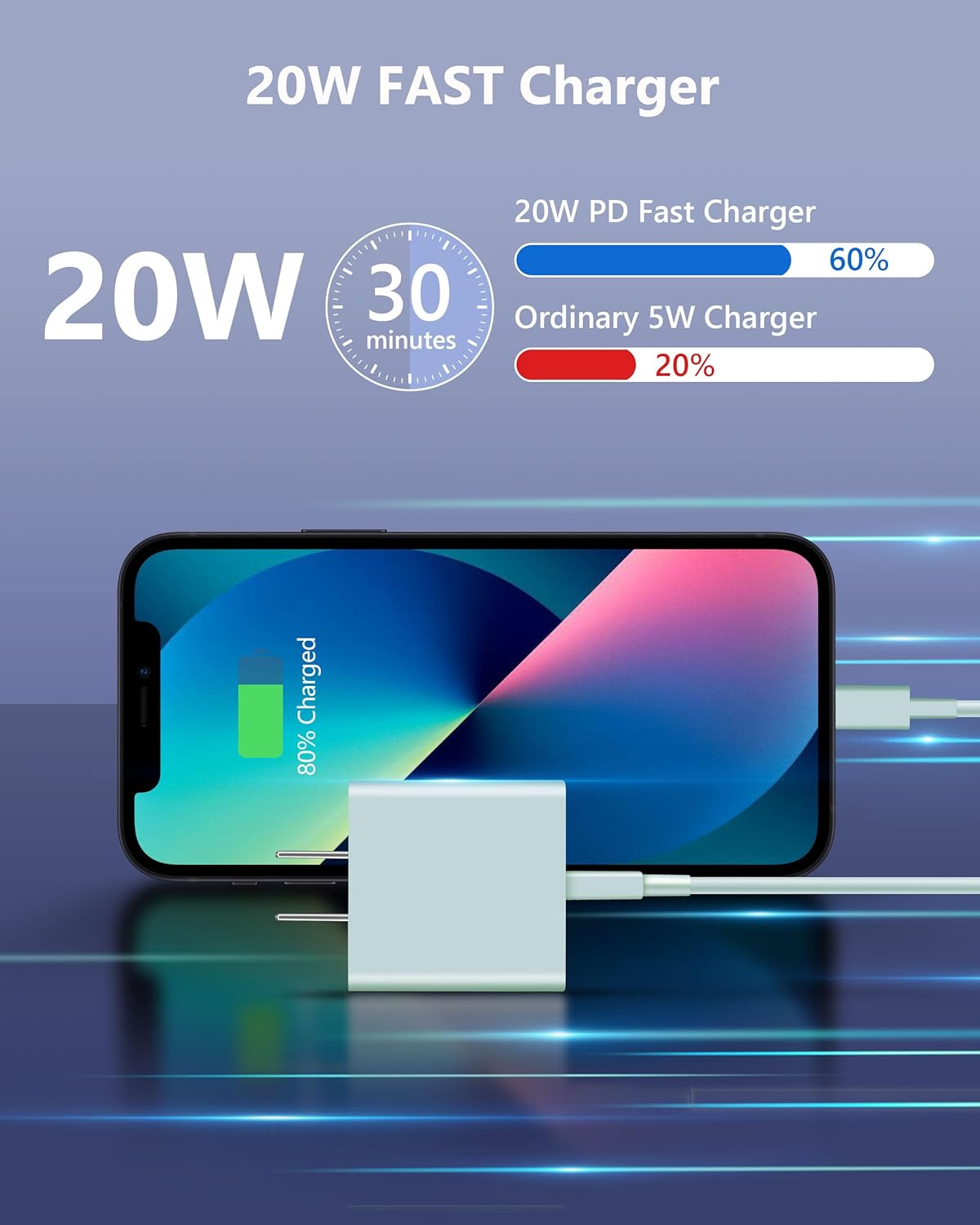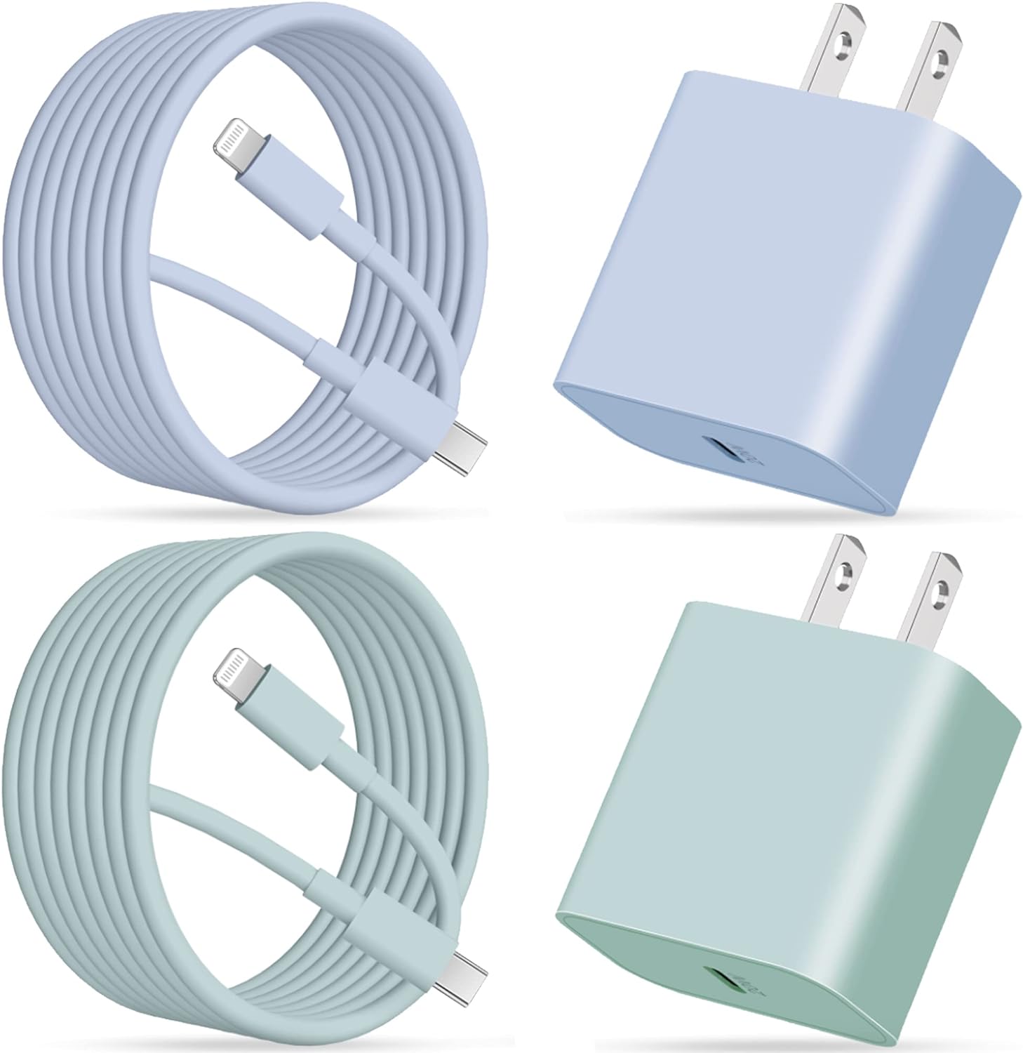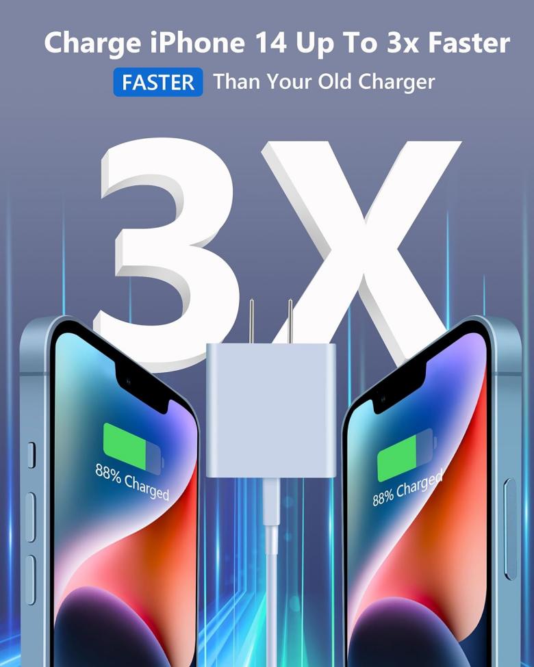 【Fast Charging】 Upgrade PD3.0 20W USB-C wall charger block with 10FT cable, can rapid charge for iPhone 14 13 12 11 up to 50% in just 30 minutes, and only takes 1.8 hours to charge your Phone fully, save more than one hour for you. 【Universal】 This Fast Charger kit can rapid charge for iPhone 14 / 14 Pro /14 Pro Max / 14 Mini, iPhone 13 / 12 / 11 / Pro Max / Mini, iPhone SE3 / SE2 / XS / XR / X / 8 Series, AirPods Pro/ iPad, also offer standrad charging speed for iPhone 7 / 6 / 5 Series. 【Reliable Cable】The 10FT Long cable full support with iOS devices. Provide 20W fast charging speed and 480Mbps high transmission speed, MFi certification ensures wide compatibility for your iPhone or iPad. no error message popping up. 【Safety Efficient Fast Charging】The fast charger kit bulit-in multi-protection system, avoiding from over-voltage, over-charge, over-heat, etc. Upgraded smart chip automatically match the current required by the device, ensure charge your device fast, safely and steadily. 【What You Get】 2* 20W USB-C Charger Block and 2* 10FT USB Cable (Green+Blue). 2-years worry-free replacement, 24 Hours friendly after-sales service.