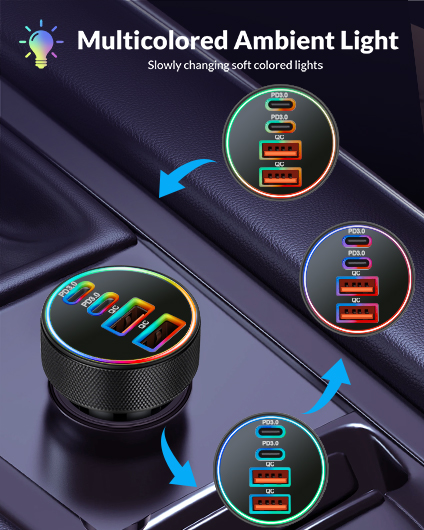 [4 in 1] 4-Port Car Charger for iPhone 17 16 15: 90W Car charger adapter equipped with 2 USB-C ports and 2 USB-A ports, support PD 45W Max (USB-C) and QC 45W Max (USB-A) output, it can fast charge most of USB C and USB A devices simultaneously. One multiport car cigarette lighter adapter for all your Phones & Tablets & USB Devices, travel essentials for men women 90W Fast Charging for iPhone 17/16/15: Car phone charger with [2025] upgraded PD/PPS/QC fast charging technology, 90W Power charging for iPhone/iPad/Mac Book/Android Devices. Charge for iPhone 17/16/15 up to 70% and iPad series up to 60% in just 30 minutes. And charge for Galaxy S25/S24 series up to 80% and most Android devices up to 60% in 35 minutes Widely Compatibility: [4 in 1] 90W Multiport Fast Car charger compatible with iPhone 17/17 Pro/17 Pro Max/Air/16e/16/15 /14/13/12/Pro Max/11/XS/XR/X, iPad Pro/Air/Mini, Mac Book Pro/Air 2025/2024/2023/2022/2020/2018, AirPods Pro 3 2, AirPods 4/Max, Samsung Galaxy S25/S24/S23/S22/S21/S20/Ultra, Note 20/10/9/8, Google Pixel 10/9/8/7/6/5/4/3 XL, LG, Moto, Tablet, Laptop, Android Phones, Driving Recorder and more Safe and Reliable: The Type C car charger adapter built-in multi-functional safety protection system to prevent form over-heating, over-charging, over-current and short circuit, when the power is full, it will automatically stop charging to protect the safety of your connected device What You Get: 3 x 90W 4-Port USB C Car Charger Cigarette Lighter Adapter. 12V-24V USB Outlet Type C Car Accessories Cargador Carro Lighter Adapter Compatible with Cars, Trucks, SUVs, Pickup, MPV, Jeep Wrangler, Off-road Vehicle, NEVs, etc