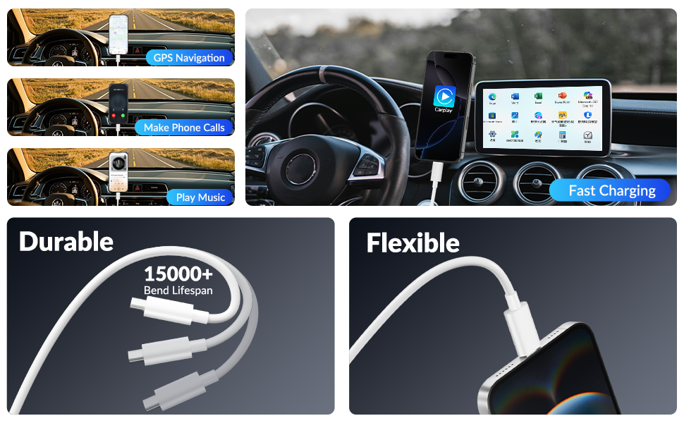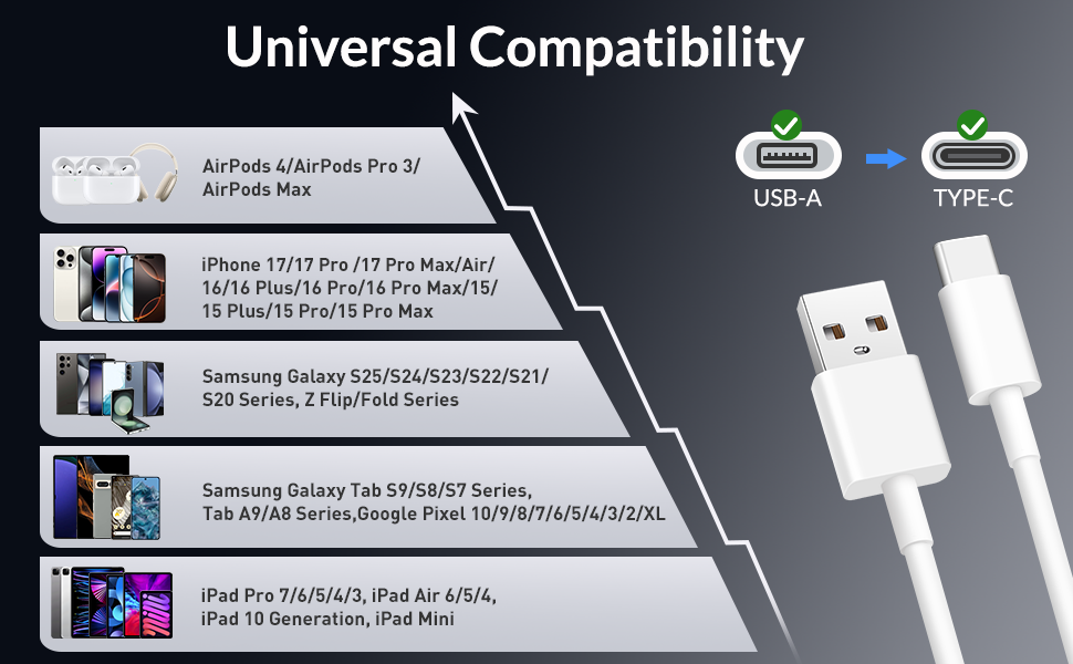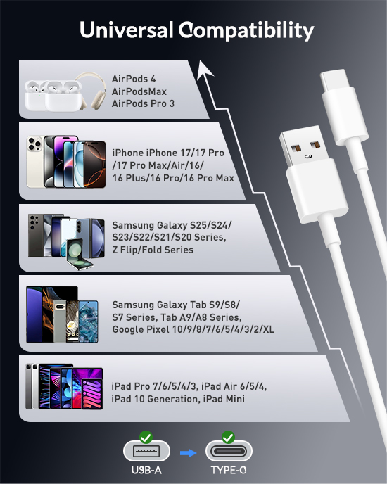 ar Carplay for iPhone 17 16 15 Charger Cord, 2 Pack 3FT USB A to USB C for iPhone 17/17 Pro Max/Air/16/15/Pro Max/Plus USBC Cable, iPad Pro 13/12.9/11, iPad 10th/Mini, Air 5/4th Gen Car Charger Cable