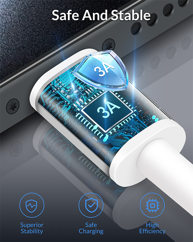 The car carplay cable supports 3A high-speed charging and data syncing speed up to (480 Mbps). 56 kΩ resistor provide outstandingly reliable conductivity and stability to ensure safe charging