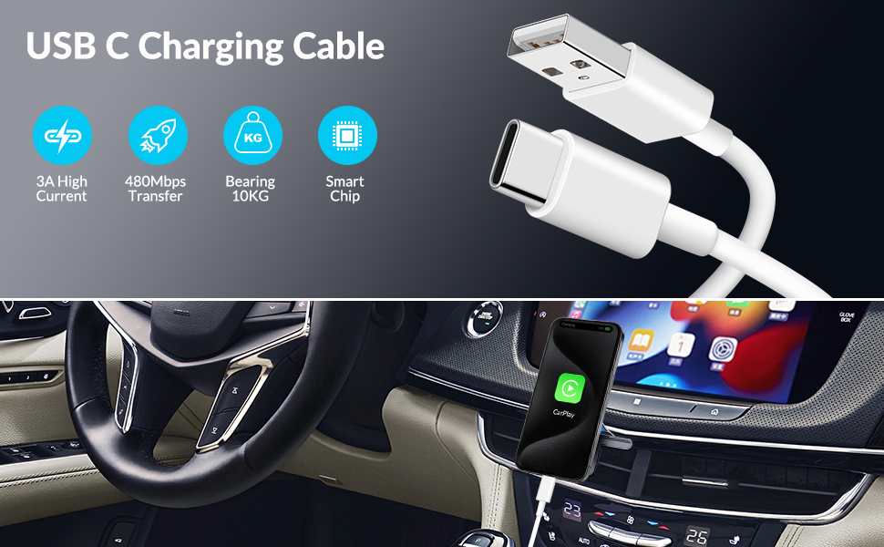 Designed for CarPlay iPhone 17: Specifically designed for in-car use, the USB to USB-C cable activates CarPlay immediately when the car charger cable is plugged into the device, ensure that you can charge your device while on the move Fast Charge and Data Sync: The iPhone 17 16 15 car charger cable supports up to 3A output and data sync transfer of up to 480Mbps, enjoy fast and efficient charging for your Type-C devices Widely Compatibility: This carplay USB A to USB C cable compatible with iPhone 17/17 Pro /17 Pro Max/Air/16/16e/16 Plus/16 Pro/16 Pro Max/15/15 Plus/15 Pro/15 Pro Max, AirPods Pro 2nd Gen, AirPods Max 2024, Airpods 4, iPad Pro 13/12.9/11 inch, iPad Air 6th/5th/4th, iPad Mini 6th Generation, iPad 10th, Galaxy, Pixel, Moto, also connects your Siri Remote (3rd generation) or Apples TV Remote (3rd generation), Carplay or Android Auto, and more Built to Last: A hard-wearing TPE outer quilt and premium copper core cord combine to create a flexible and durability type c to usb charging cable, and carplay cord can withstand more than 15,000+ bending lifespan tests What You Get: 2-Pack 3FT USB C to USB A Cable, 24/7 friendly customer serives. Carry this carplay cable cord meet your charging needs, suitable use for home, in the office or on the go